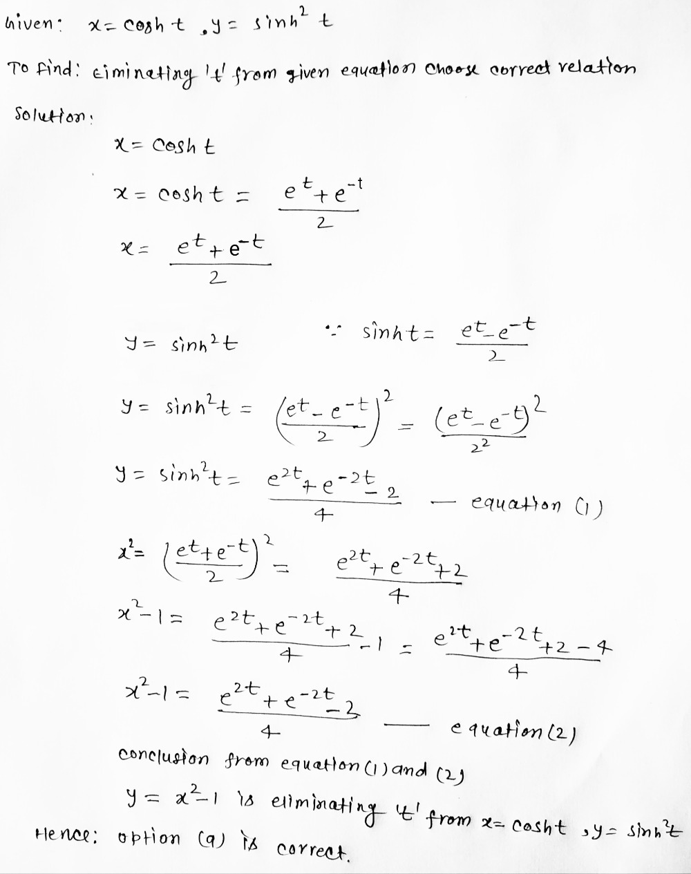 Eliminating T From X Cos H T Y Sin H2t Gives Gauthmath